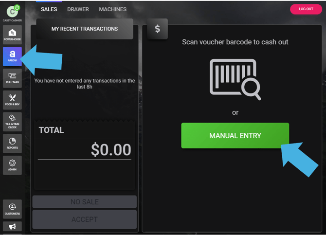 - To redeem an Arrow voucher, open the Arrow module within the Tab King POS.